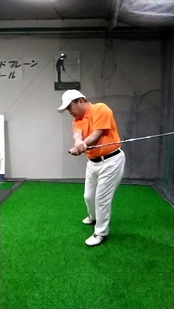 右横に倒れたりすると、ヘッドスピードが上がらないで飛距離が出ないで方向性も悪くなります。
