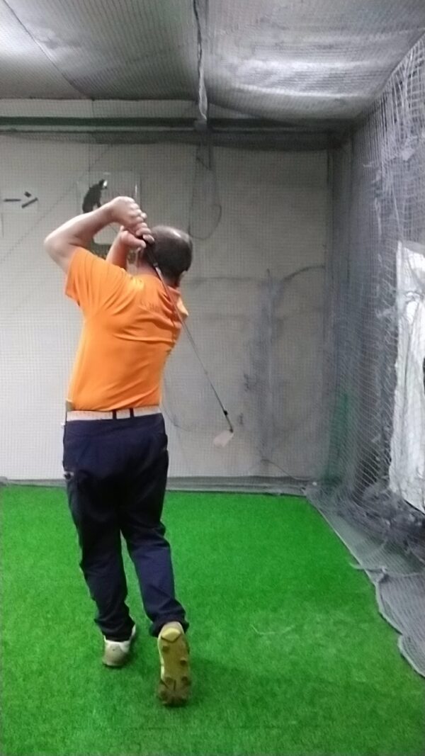 フルスイングでは体の回転のスピードが上がるためクラブヘッドは肩口よりやや左から出てますがフォロースルーのコック動作により体の回転に負けない「腕とシャフトの三角形」を作りましょう。また、フィニッシュでは上半身が前傾しているため左腕上腕は平行よりやや肘側が上がるということも忘れないで下さい。自分のフィニッシュ姿勢を確率しコースで再現できればコースでも練習場と同じ弾道が打てるようになります。